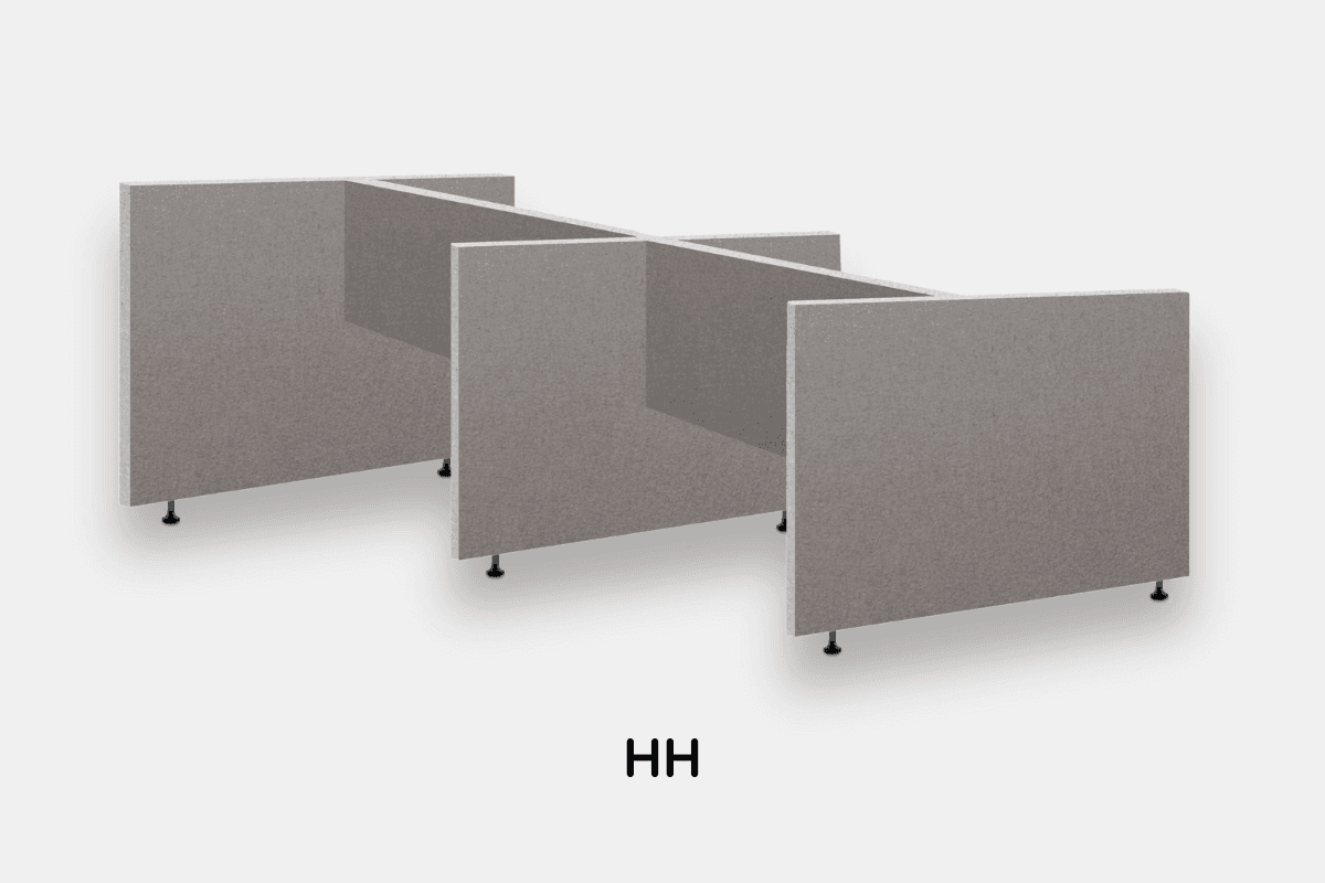 EASYfabric Workspace HH-Form ist eine Anordnung von gepolsterten Akustik Trennwänden. Mit den Trennwänden können verschiedene Arbeitsplätze voneinander getrennt werden. Dies ist eine häufig gewählte Lösung in Großraumbüros. Sie sorgt für mehr Privatsphäre und Konzentration.