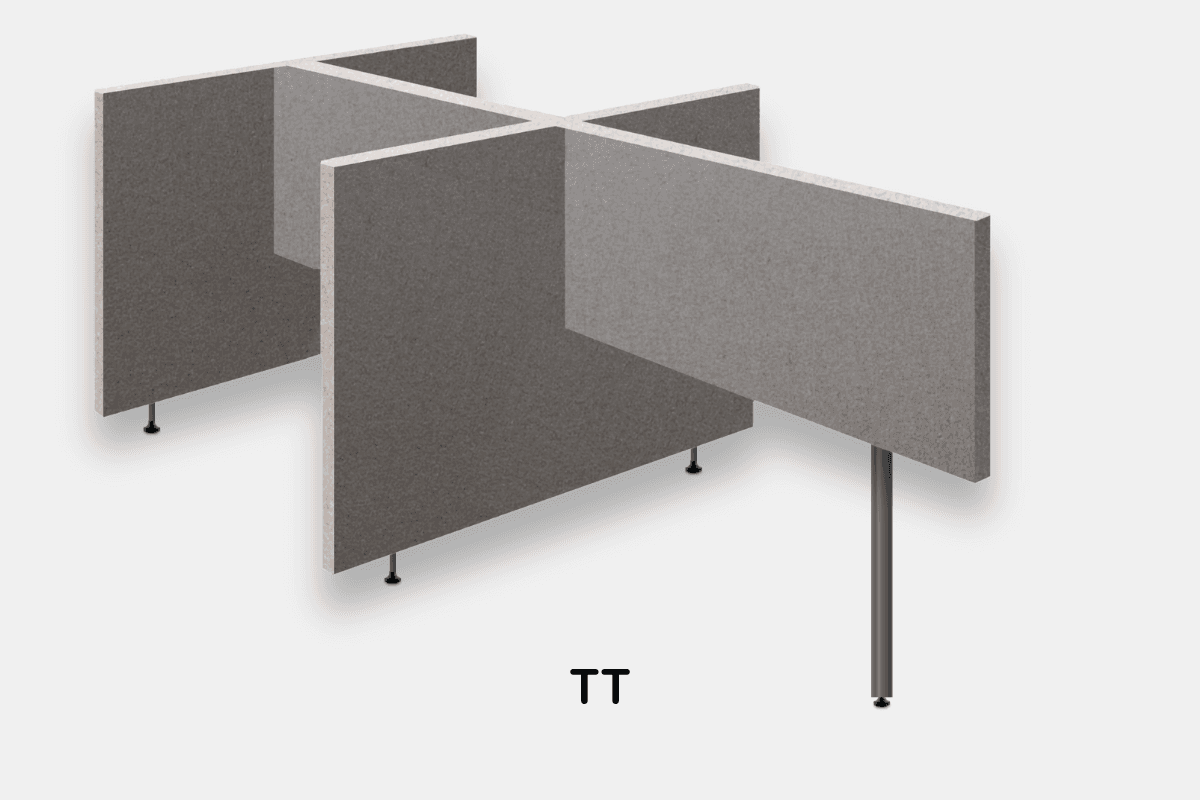 EASYfabric Workspace TT-Form ist eine Anordnung von gepolsterten Akustik Trennwänden. Mit den Trennwänden können verschiedene Arbeitsplätze voneinander getrennt werden. Dies ist eine häufig gewählte Lösung in Großraumbüros. Sie sorgt für mehr Privatsphäre und Konzentration.