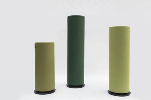 Die dB Pillar-Kollektion von Abstracta umfasst eine Reihe von Akustikelementen, die einzeln in jedem Raum aufgestellt werden können. Die Kollektion besteht aus zehn Modellen, die von einem Pflanzgefäß bis zu einem Hocker variieren. Jedes der Modelle der dB Pillar-Kollektion besteht aus einer gepolsterten Säule, die mit schallabsorbierendem Abfallmaterial gefüllt ist, das aus der Fabrik von Abstracta stammt. Die Elemente sind online in den vierzehn Farben des Stoffes Salsa erhältlich.
